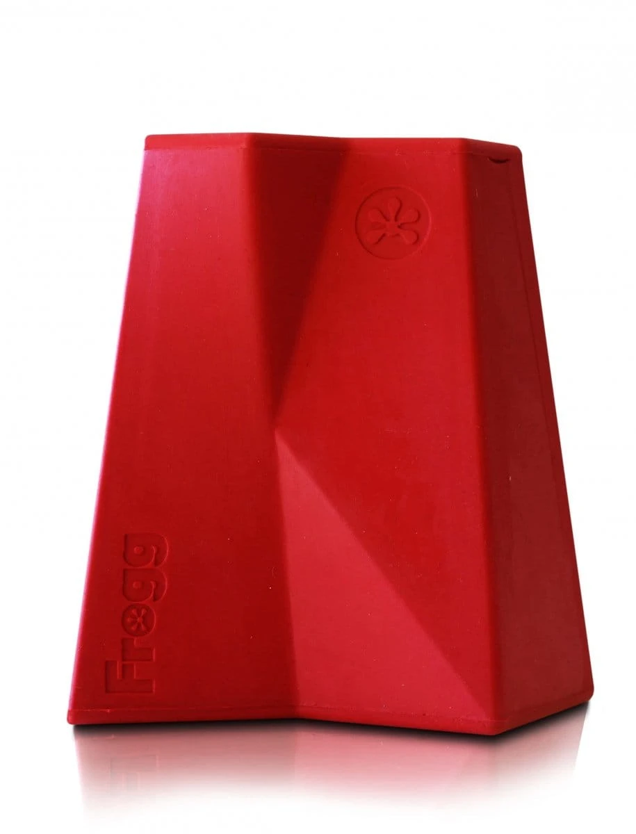 Frogg The Brick to wytrzymała zabawka na przysmaki. Nie tylko posiada otwór, do którego możemy wrzucić suche smaczki, ale również na zewnątrz ma rowki, w które można wsmarować pastę orzechową, serek, pasztet i wszystko to, co bezpieczne dla psa.